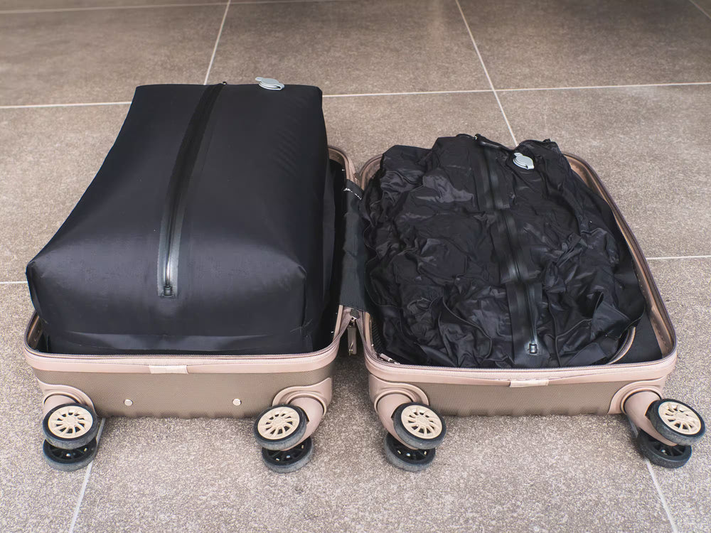 Lleva hasta un 60% más en tu equipaje de mano gracias a la bolsa de compresión 2PackBags™. Básicamente, triplicas el espacio disponible.