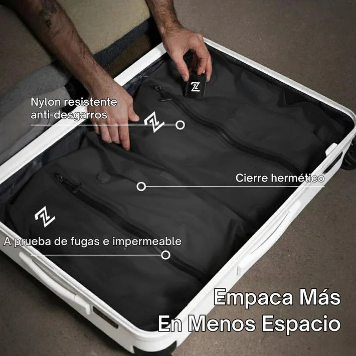 De media, cada bolsa de vacío puede comprimir alrededor de 15 prendas. El sellado hermético te permite empacar mucho más ocupando el mínimo espacio posible.